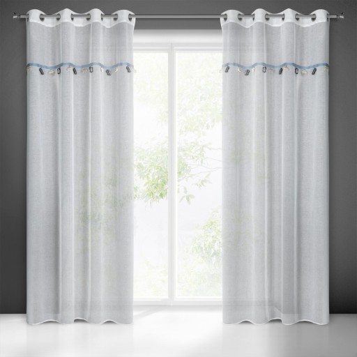 Firana z wszytą taśmą dekoracyjną z motywem dziecięcym, kolor biały