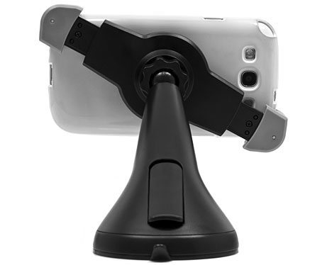 Gumowe wykończenie ramion chroni obudowę przed zarysowaniem oraz pewnie trzyma urządzenie, natomiast duża solidna silikonowa przyssawka z żelowym krążkiem pewnie trzyma uchwyt na szybie lub desce rozdzielczej.