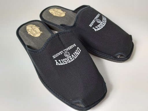 Męskie pantofle, laczki, kapcie z otworkami przy palcach firmy Meteor.