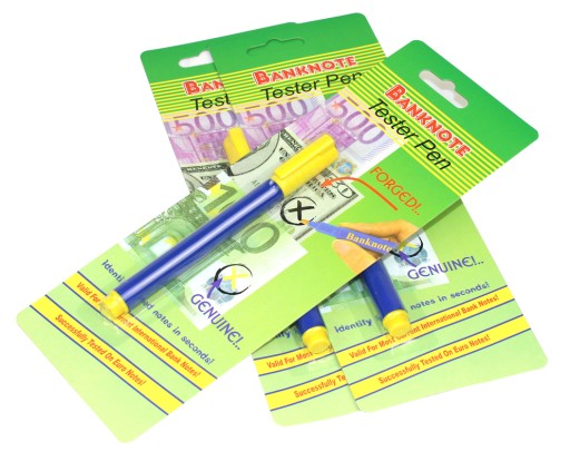 - 1 szt. Marker do sprawdzania autentyczności banknotów (wystarczy wykonać mały znak na jasnej części banknotu aby upewnić się czy jest on prawdziwy czy fałszywy. Jeśli marker pozostawi wyraźny ciemny ślad, banknot jest fałszywy)
