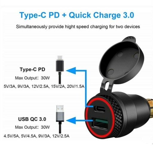 *QC3.0 USB i Typ C PD szybkie uruchomienie motocykla Hella i DIN