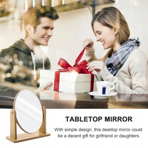 z konstrukcją obrotową, to lusterko makijażowe jest łatwe do obrotu i regulacji kąta. Możesz łatwo wybrać najlepszy kąt i pozycję, makijaż, a następnie wyśleszą wizję twojego wyglądu makijażu. Makijaż Vanity Lustro z naturalnym stojakiem z drewna, wyglądać eleganckim. Nadaje się do użytku w domu i biżuterii.