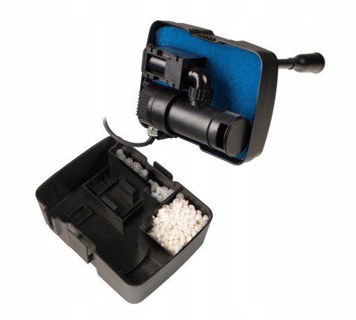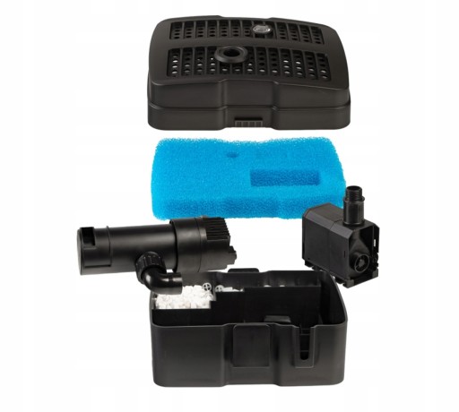 ✅ duży pojemnik filtracyjny zawiera gąbkę biologiczną do filtracji mechanicznej, kaldnes i porowaty wkład biologiczny do podstawowej filtracji biologicznej oraz lampę UV-C do sterylizacji wody