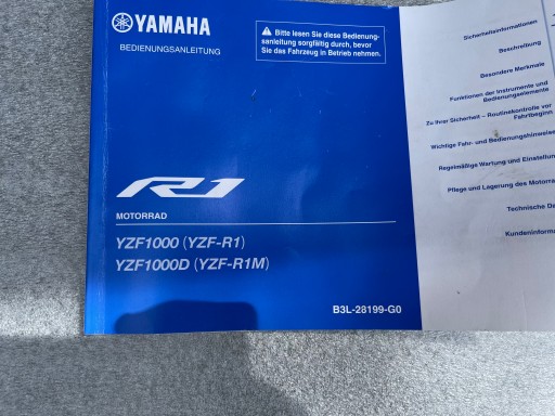 Instrukcja obsługi Yamaha YZF-R1/R1M RN65 2020-22 Oryginał B3L-28199-G0 . Stan używany instrukcja nie podarta wszystkie strony są wersja językowa Niemiecka . Możliwa wysyłka lub odbiór osobisty .