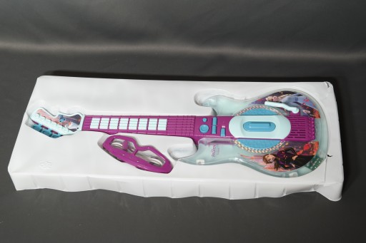 Idealna gitara dla początkujących gitarzystów, którzy stawiają pierwsze kroki w muzyce. Dzięki wbudowanym 6 utworom dziecko może uczyć się gry na gitarze wraz ze swoimi ulubionymi bohaterami z bajki FROZEN. Gitara świetnie nadaje się do zabawy w dzień i w nocy, dzięki wbudowanym efektom świetlnym. Zgaś światło, aby zobaczyć gitarę świecącą w ciemności i stać się gwiazdą rocka!