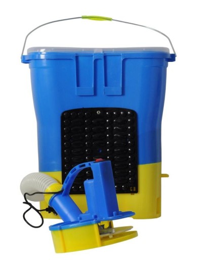 - Posiada 20-litrowy zbiornik na materiał rozrzucany