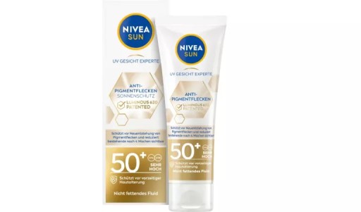 Nivea Sun Face Anti Pigment Spots SPF50+ specjalnie chroni twarz, szyję i dekolt przed promieniowaniem UV A i UVB oraz oparzeniami słonecznymi. Formuła jest szczególnie skuteczna w walce z plamami pigmentacyjnymi posłonecznymi. Ciesz się jedwabiście miękką skórą dzięki lekkiej i nawilżającej konsystencji kremu z filtrem przeciwsłonecznym. Stosuj codziennie ten krem przeciwsłoneczny do twarzy z SPF 50: jego tolerancja dla skóry została potwierdzona dermatologicznie. Formuła jest w 65% biodegradowalna, tubka i zakrętka pochodzą w 50% z recyklingu, nie zawierają mikroplastików i szkodliwych dla środowiska filtrów UV oktokrylenu, oktinoksatu i oksybenzonu z szacunku dla oceanu.