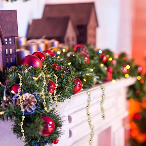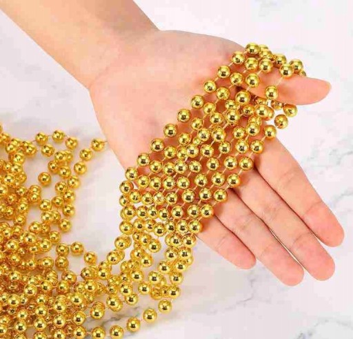 Błyszcząca świąteczna girlanda to wspaniały dodatek do dekoracji stołów, świeczników, abażurów, prezentów etc. Girlandy na choinkę w formie koralików doskonale zastopią tradycyjne łańcuchy. Złoty kolor zapewnia w świetle wspaniałe refleksy.