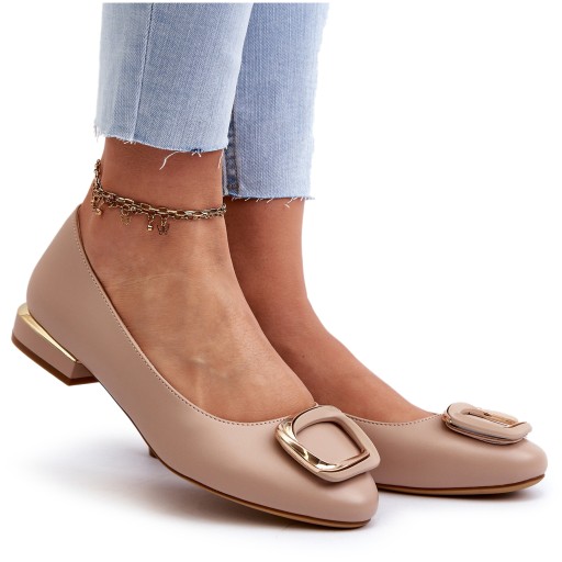 BEŻOWE BALERINY ZE ZŁOTĄ OZDOBĄ NA PŁASKIM OBCASIE SERGIO LEONE BL203