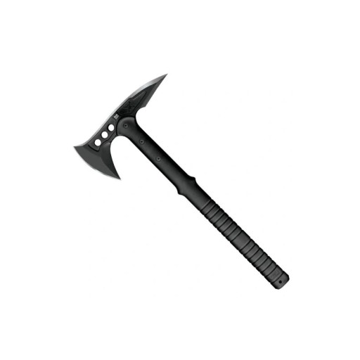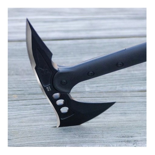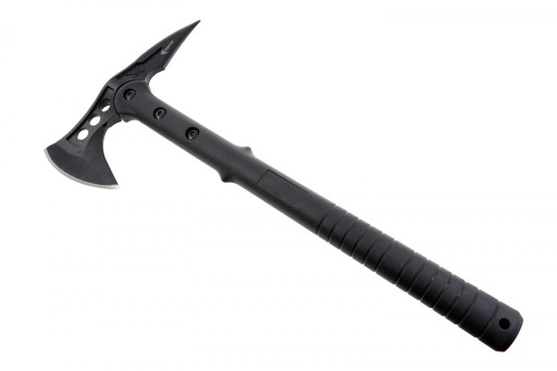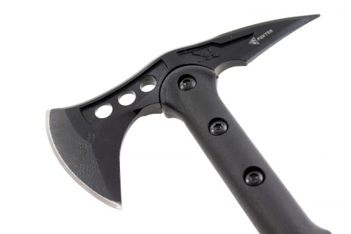 Toporek posiada rękojeść wykonaną z powierzchni antypoślizgowej ABS, oraz posiada otwór do którego możemy dowiązać sznurek i zabezpieczyć go na nadgarstku.