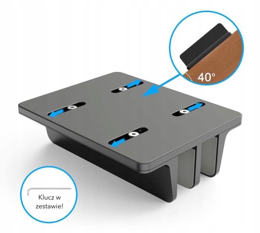 Dzięki anty-poślizgowej gumie na spodzie stojaka, stojak nie zsunie się z biurka nawet przy nachyleniu 40 stopni!