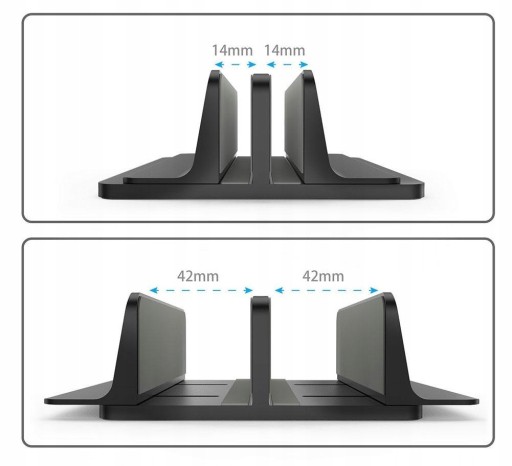 Możliwość regulacji za pomocą śrub pozwala na wielkie wykorzystane tego stojaka do laptopów, których szerokość wacha się między 10mm a 70 mm, takich jak MacBook Pro, MacBook Air, Microsoft Surface, Dell XPS, HP Envy i wiele wiele innych.