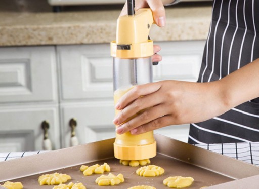 Wyciskarka do ciastek to niezastąpiony sprzęt, gdy chcesz szybko przygotować pyszne ciastka dla gości czy po prostu masz ochotę na coś słodkiego do kawy. Wystarczy przygotować ciasto i włożyć je do tuby, a następnie przykręcić odpowiedni wzór i wyciskać bezpośrednio na blachę.