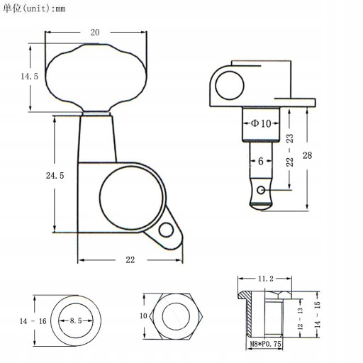 Zestaw kołków tuningowych 3L i 3R, przełożenie 1:15.