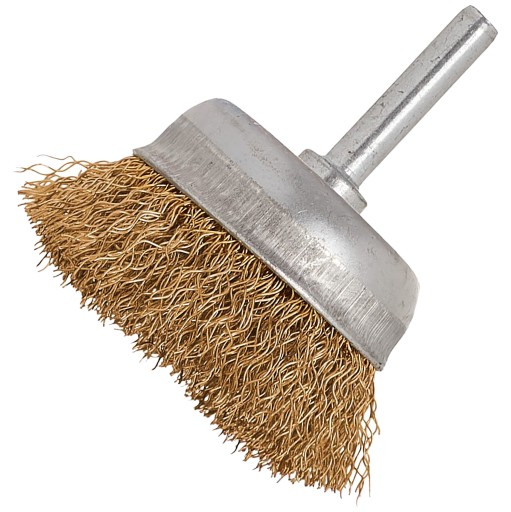 Szczotka druciana czołowa to narzędzie do czyszczenia i polerowania metali, do wiertarek i szybkobieżnych urządzeń napędzanych elektrycznie i pneumatycznie. Szczotka druciana czołowa jest wykonana z wysokiej jakości mosiężnego drutu, który nie rysuje i nie uszkadza metalu. Falowane druty zapewniają doskonałą skuteczność i wytrzymałość podczas pracy. Falowane druty doskonale docierają do trudno dostępnych miejsc i usuwają wszelkie zanieczyszczenia, takie jak rdza, stara farba, lakier czy zadziory. Szczotka druciana czołowa pasuje do każdej wiertarki dzięki trzpieniowi o średnicy 6mm. Dzięki średnicy 50 mm możesz szybko i łatwo oczyścić duże powierzchnie metalowe.