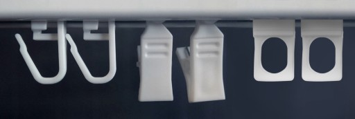 - Zatrzaskiwanie uchwytów i suwaków bezpośrednio na szynie, co ułatwia i przyśpiesza montaż szyn, a także zawieszanie na nich tkanin