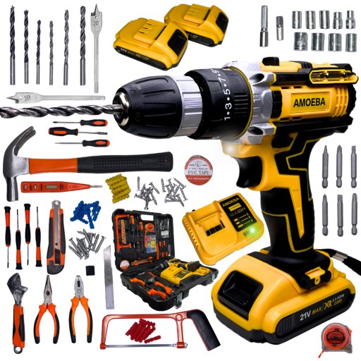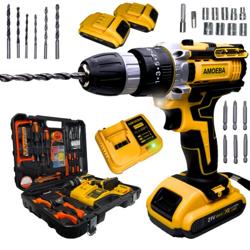 АККУМУЛЯТОРНАЯ ДРЕЛИ-ОТВЕРТКА 21 В, 2 ЗАРЯДНЫХ УСТРОЙСТВА, БОГАТЫЙ НАБОР