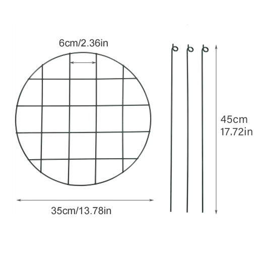 3. Odpowiedni rozmiar: każdy wzrost przez wsparcie dla roślin ma 42 cm długości i 35 cm średnicy.