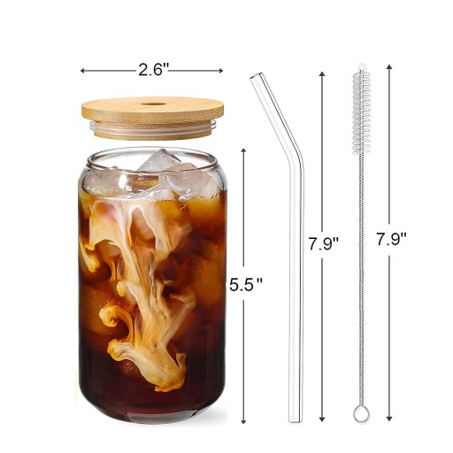 🍺【Zestaw szklanek】: Zawiera 4 szklane słoiki, 4 bambusowe pokrywki, 4 słomki wielokrotnego użytku i 2 szczotki do czyszczenia, wzornictwo zestawu jest klasycznie piękne, zestaw kombinacji jest bardzo praktyczny. Pokrywa z drewna bambusowego, zawierająca uszczelniony pierścień silikonowy, niełatwa do wyciekania, odporna na kurz i owady. Pogrubiona, antypoślizgowa konstrukcja na dnie butelki pozwala na stabilne umieszczenie i nie jest łatwa do przewrócenia.