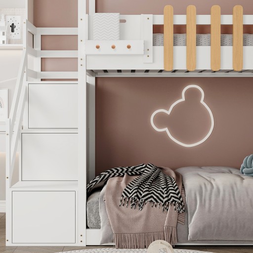 [Wygodne Schody i Szafki] Schody sprawiają, że spanie na piętrze jest łatwiejsze i bezpieczniejsze oraz zapewniają dzieciom wystarczające bezpieczeństwo i stabilność. Poręcze i solidne schody z szafkami umożliwiają przechowywanie książek i zabawek, dzięki czemu sprzątanie pokoju staje się dziecinnie proste.
