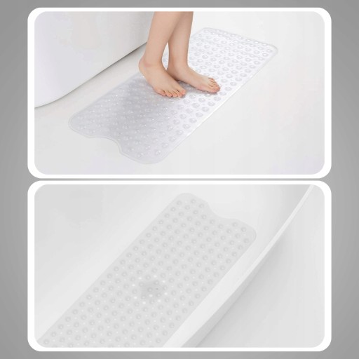 Niezależnie od kształtu i materiału wanny, mata nie przesuwa się ani nie odrywa się podczas użytkowania. Można ją łatwo wyjąć do czyszczenia lub przeniesienia.