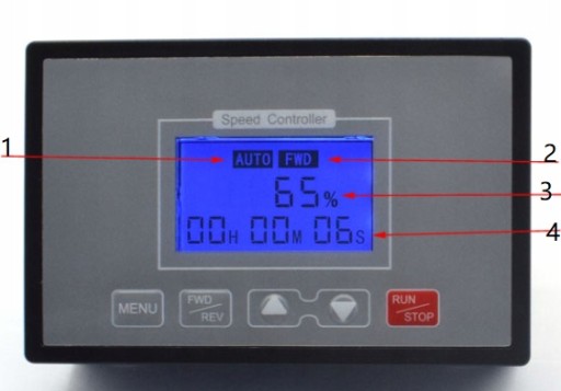 - Inteligentny ekran LCD z podświetleniem może wyświetlać czas pracy, procent prędkości obrotu, tryb bieżący, obrót do przodu i stan obrotu wstecznego