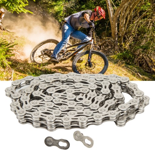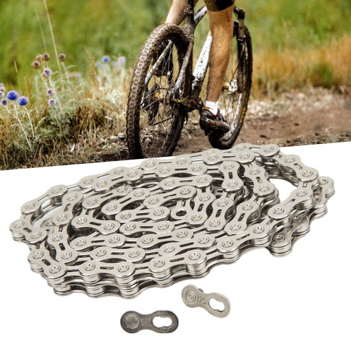 Łańcuch rowerowy 12-biegowy, półwydrążony, stalowy łańcuch do roweru szosowego i górskiego ze złączem łańcucha, do jazdy na rowerze, srebrny