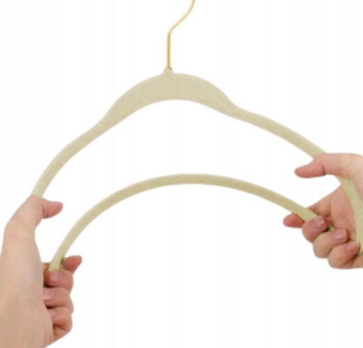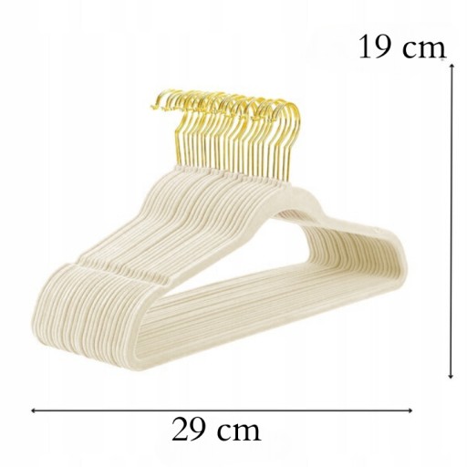 Zestaw 35 szt. wieszaków w kolorze beżowym, idealnie dopełnią kolorem szafę Twojego dziecka! Pokryte aksamitnym welurem, zabezpieczą ubranka przed zsuwaniem się, a zaokrąglone ramiona sprawią, że nie będą się odkształcać. Wykonane z wytrzymałego i cienkiego materiału co pozwoli na zaoszczędzenie miejsca w szafie! Dzięki specjalnym wycięciom, bez problemu zawiesisz koszulki na ramiączka oraz sukienki.