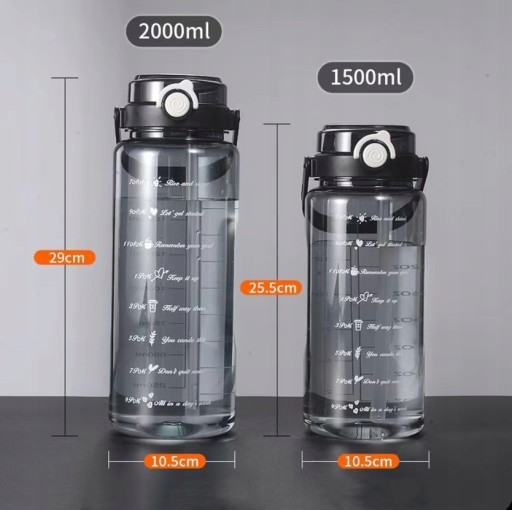 Butelka Na Wodę Bidon Tritanowy BPA FREE 2000 ml-Wysoka pojemność