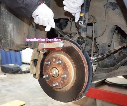 2. Ostrożnie przytrzymaj poziomica magnetyczna z boku tarczy hamulcowej;