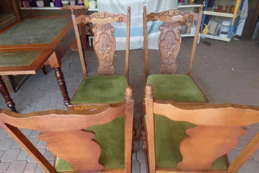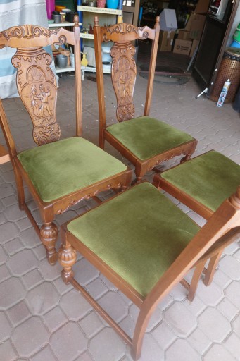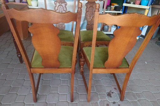 Dobry stan niemiecka jakość polecam stan jak na zdjęciach ładne używane ale ładnie utrzymane odnowione stelaże , materiał cały nigdzie nie uszkodzony bardzo dobrej jakości . na ślicznych nogach ,bardzo solidne, mocne wytrzymałe , stabilne , wygodne bardzo dobrze wyprofilowane oparcie , dobrej jakości , pasują i wkomponują się do każdego wnętrza