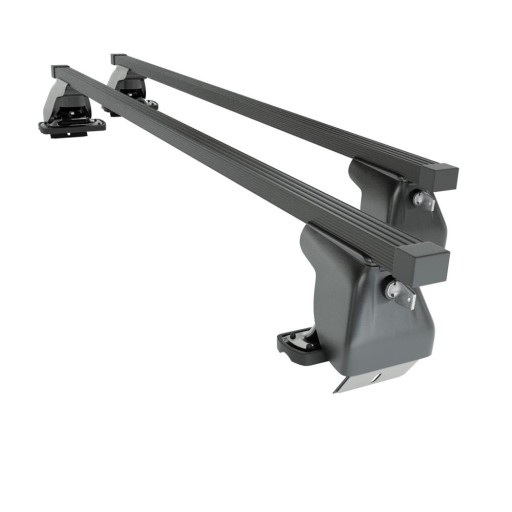 Bagażnik dachowy bazowy składa się z 2 solidnych stalowych belek oraz 4 uchwytów (tzw. łap) Dromader D-6, które dopasowane są do typu dachu auta oraz do jego modelu i generacji.