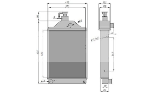 - Średnica otworów montażowych w bokach obudowy chłodnicy: 10 mm
