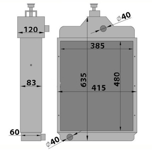 - Średnica króćców: 40mm