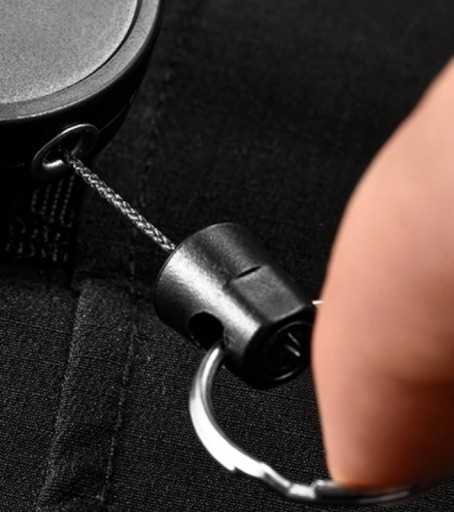 SOLIDNIE wykonany RETRAKTOR posiada mocną długą (75cm) plecioną linkę z włókna węglowego.