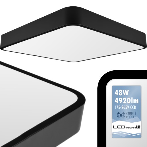 Natynkowy panel 230V LED kwadratowy 48W w kolorze czarnym z czujnikiem ruchu oraz zmierzchu