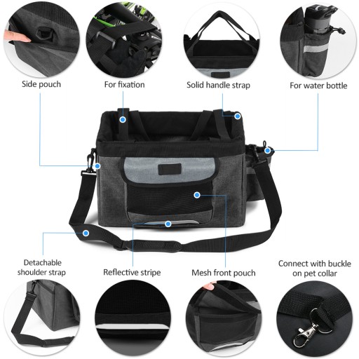 Na kierownicę mniejszą niż 2,5 cm (0,98 cala).Nośność do 22 funtów, 14 x 10 x 9 cali, bardzo łatwa dla małego psa, kota i królika.Nowy system mocowania, łatwy montaż i zsuwanie w dół, aby go zdjąć.Odporny na zużycie przedni kosz oxford, niełatwy do odkształcenia dzięki zdejmowanej płycie montażowej.Wygodny jest również worek na owoce, stopy, pudełko na lunch, przekąski, napoje i inne przedmioty podczas biwakowania i pikniku. Dane techniczne:Tkanina: tkanina Oxford rama aluminiowa