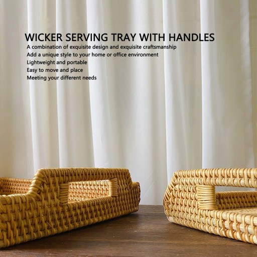 4. Lekki i przenośny: Lekka i przenośna konstrukcja wiklinowej tacy do serwowania z uchwytami ułatwia przenoszenie i umieszczanie, spełniając różne potrzeby.