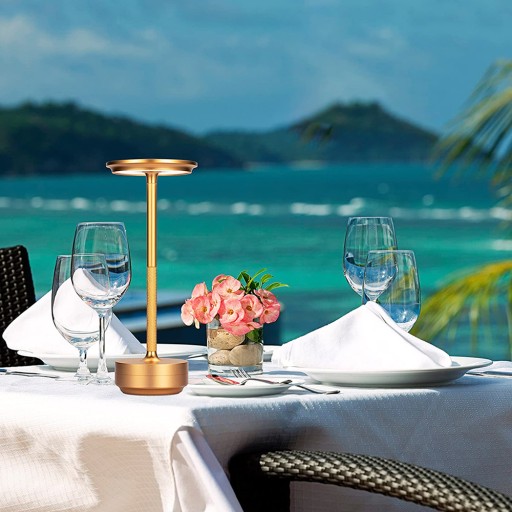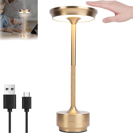 RETRO PROSTY BEZPRZEWODOWY LAMPA STOŁOWA ZŁOTO MOŻLIWOŚĆ PRZYCIEMNIANIA 3 KOLORY USB