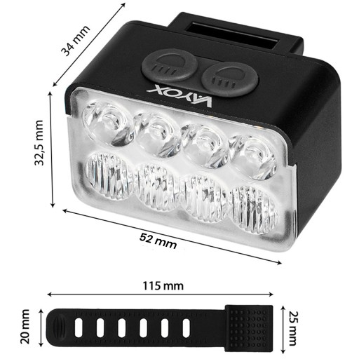 - Kompaktowe wymiary lampki sprawiają, że jest ona lekka i łatwa w montażu, nie obciąża jednocześnie roweru