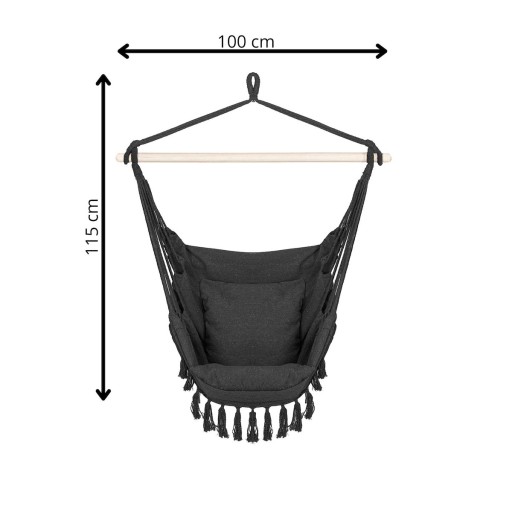 W zestawie z krzesłem bujanym w stylu hamakowym znajdują się GRATIS dwie poduszki dopasowane kolorystycznie do siedziska.