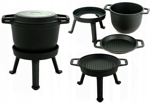 Patelnie grillową jak i garnek można również używać w domu, naczynia przystosowane są do wszystkich rodzai kuchenek.
