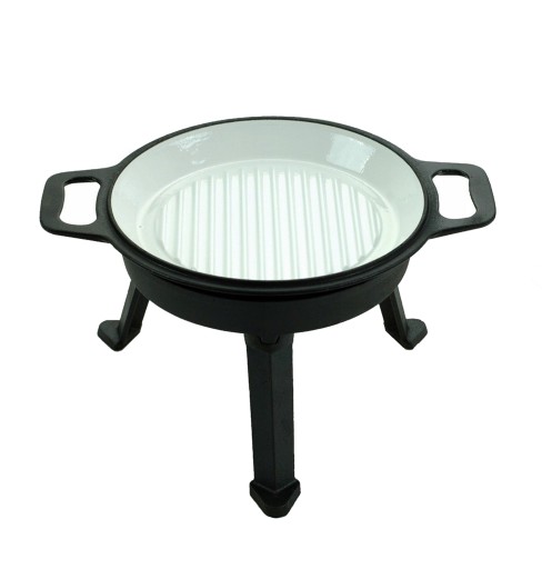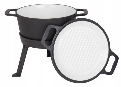 ✅ Wnętrze kociołka, jak i patelni grilowej zostało pokryte powłoką emaliowaną, odporną na wysokie temperatury, zapobiegającej przywieraniu, odpornej na ścieranie.