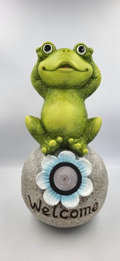 Figurka ogrodowa Wielka żaba na kamieniu Lampka Solarna LED 36 cm