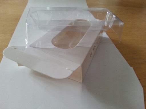 pudełko białe z przeźroczystą plastikową wkładką na pendrive