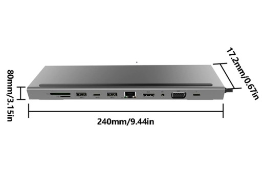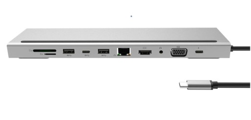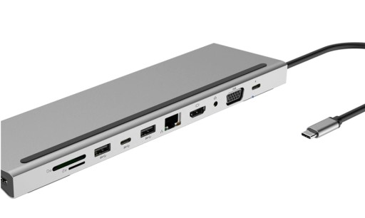 HUB USB-C 2x HDMI 4k VGA 3x USB 3.0 LAN RJ45 SD FT Card Jack 3,5mm Power Delivery 87W