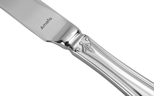 Nóż stołowy Duke posiada elegancką zdobioną rączkę, na której widnieje znaczek lilii. Pasują one świetnie do wnętrz eleganckich oraz wytwornych. Dokupując do niego łyżkę oraz widelec stworzysz piękną zastawę stołową, która zachwyci twoich gości. Ponadto, dzięki wysokiej jakości stali nierdzewnej użytej do produkcji, będą one służyć przez długi czas.