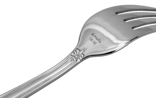 Widelec stołowy zserii Duke to nieodzowny, wszechstronny element zestawu sztućców. Doskonale komponuje się z eleganckimi aranżacjami stołów, będąc nie tylko praktycznym, ale i estetycznym dodatkiem. Wykonanyze stali nierdzewnej , linia sztućców zachwyca swoją trwałością. Ręczne polerowanie nadaje powierzchni lśniący wygląd. Wytwornie zdobiona rączka dodaje elegancji, nadając jednocześnie charakterystyczny, styl art deco.