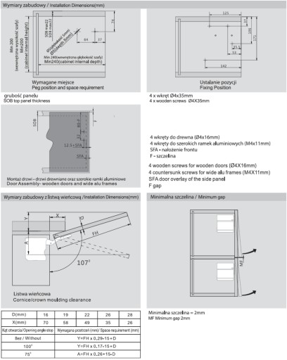 Systemy Top-Stays przeznaczone są do frontów o maksymalnej szerokości 1200 mm, wysokości od 250 do 500 mm i grubości od 16 do 28 mm. Takie rozwiązania dają też szersze możliwości projektantom mebli, zwłaszcza że popularne są obecnie szerokie szuflady, a równie szerokie, unoszone fronty będą się doskonale z nimi komponowały.