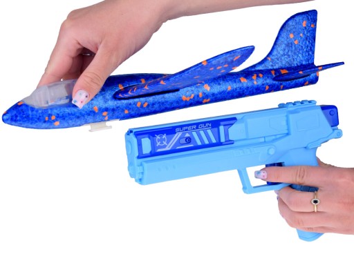 Piankowy Samolot ze światłem LED wystrzeliwany z Pistoletu to zabawka dla każdego dziecka, lubiącego wesołe zabawki. Samolot jest wykonany ze styropianu i ma niebieski kolor, wyposażony jest w światło LED, które uaktywnia się w trakcie zabawy samolotem, dając świetny efekt wizualny. Pistolet jest wykonany z tworzywa sztucznego także w niebieskim kolorze, posiada naciąg, dzięki, któremu możemy wystrzelić samolot przed siebie. Zabawa naprawdę jest pełna emocji i śmiechu!
